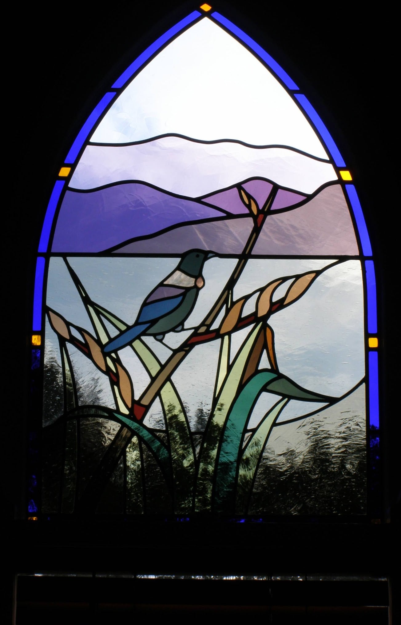 Equally rewarding are the numerous private residence commissions that Pukerua Glass Studio has undertaken across New Zealand. For these, Olaf offers a complete service from initial consultation, to design, to installation. His network of specialists in associated trades can be called upon if required.